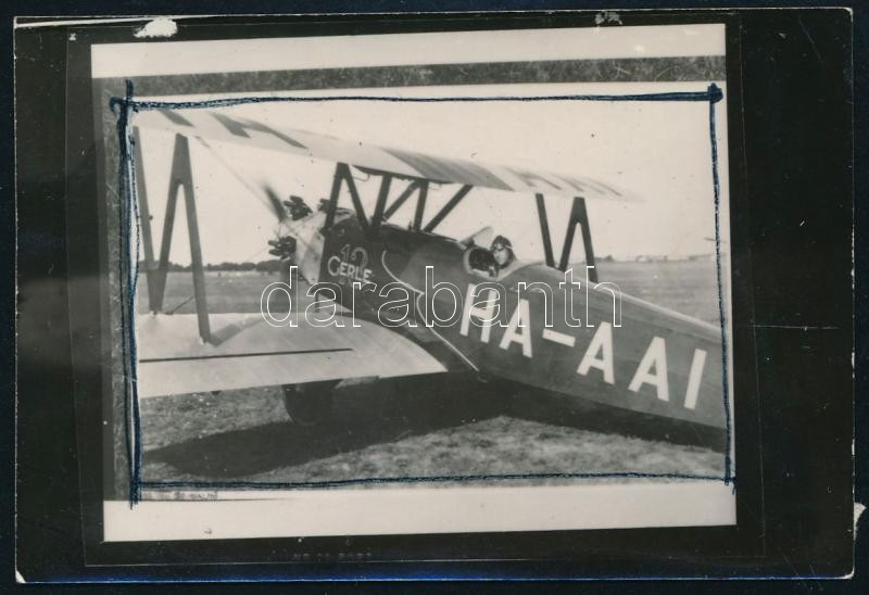 Leírás: 1933 A Bánhidi Gerle 13 (HA-AAI) magyar tervezésű sportrepülőgép, tervezte Bánhidi Antal, későbbi kontakt másolat sajtóközléshez előkészítve, 6×9 cm