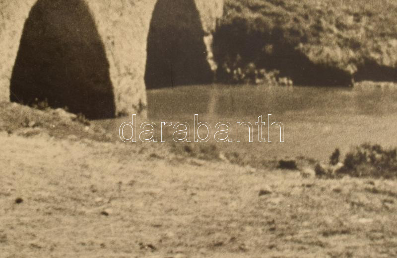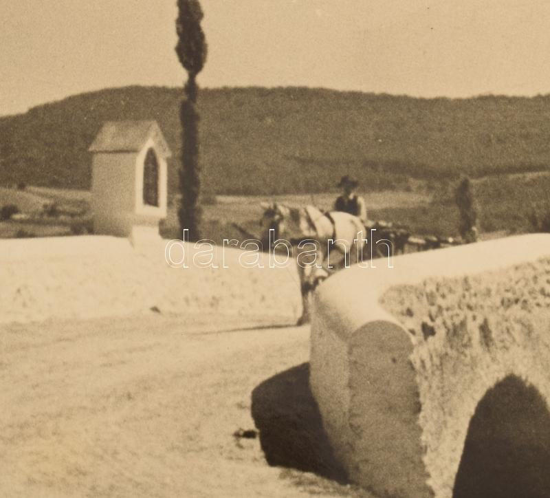 1939 Tarjánné Dvihally Anna (1907-1982): "Hegyesdi híd", fotó kartonon, "B. S. E. Fotokiállítás 1939" címkével, a hátoldalon feliratozva, foltos, sérült, részben hiányos kartonnal, a fotó felületén karcolásokkal, az egyik felső sarkán kis sérüléssel, 21x30 cm, karton: 42x47 cm