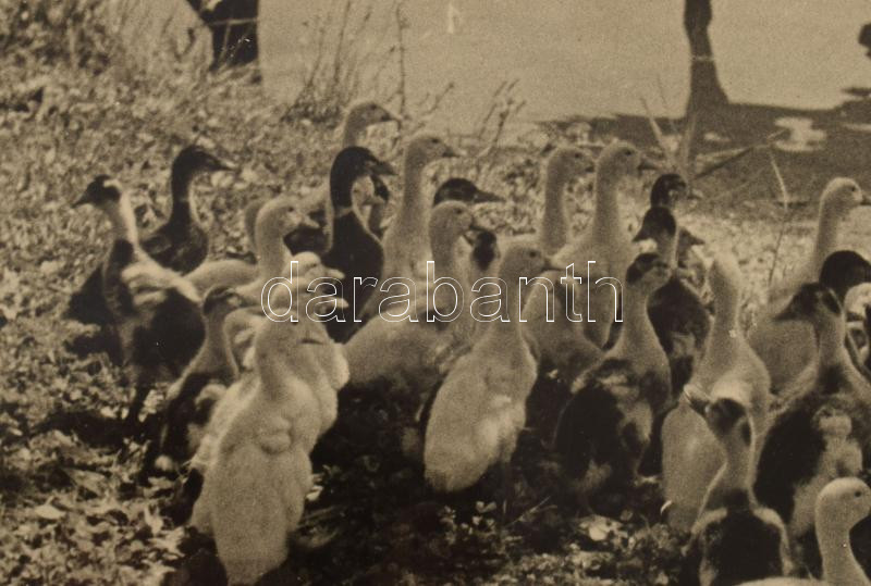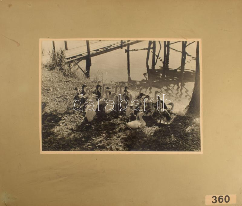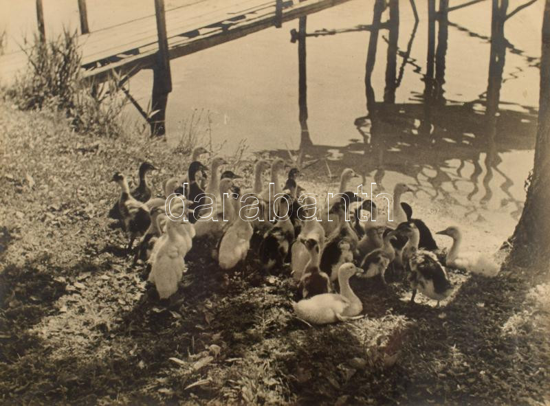 Leírás: 1939 Tarjánné Dvihally Anna (1907-1982): "Reggeli után", fotó kartonon, "B. S. E. Fotokiállítás 1939" címkével, a hátoldalon feliratozva, foltos, kissé sérült, a fotó felületén karcolásokkal, 22x30 cm, karton: 42x47 cm