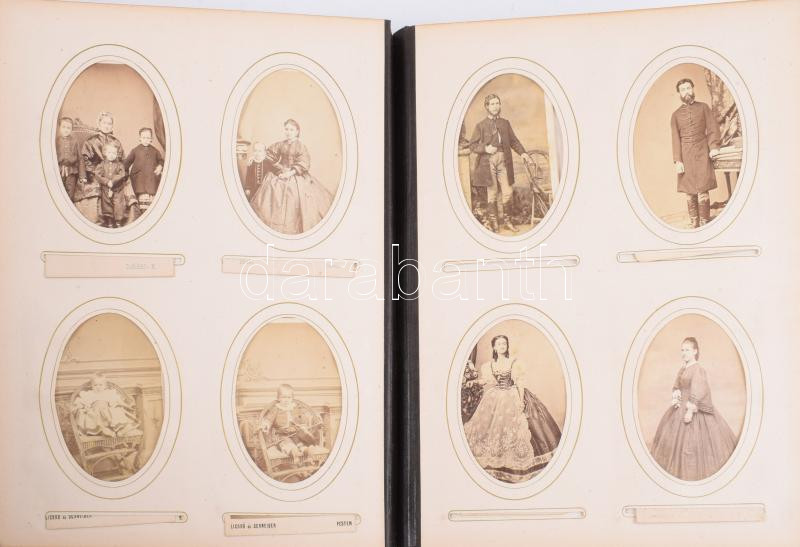 Leírás: ca 1860-1870 Fotótörténeti gyűjtemény 130 db kiváló állapotú vizitkártyával és kabinetfotóval, mind magyar fényképészek műtermeiből, beazonosítani való nemes urakkal és hölgyekkel, korabeli fém veretes plüss albumban. Nagyon szép anyag!