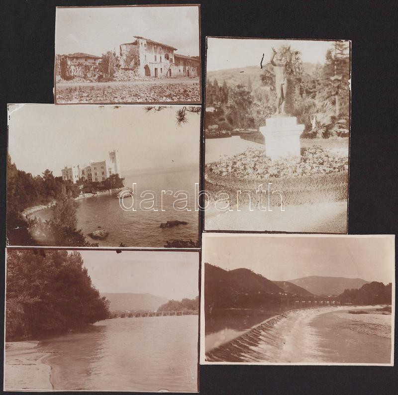 Leírás: ca 1916 Isonzo, Miramare, Doberdó 5 db feliratozott fotó 11x8 cm