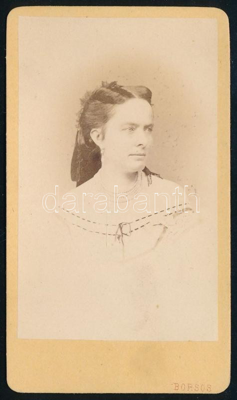 Leírás: cca 1865 Kappel Emília (1824-1888), Kappel Frigyes bankár lánya, Petőfi Sándor megkérte a kezét, de Lónyay Menyhérthez ment feleségül, keményhátú fotó Borsos József pesti műterméből, 10,5×6,5 cm
