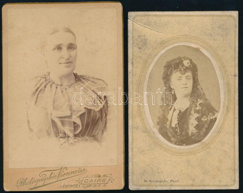 cca 1865 Női portrék, 2 db keményhátú fotó kairói és konstantinápolyi ... https://www.darabanth.com/hu/518-Filatelia-kepeslap-numizmatika-mutargy-konyv-papirregiseg-ekszer-aukcio/524.0/Fotomuveszet/Foto~70/cca-1865-Noi-portrek-2-db-kemenyhatu-foto-kairoi-es-konstantinapolyi-mutermekbol-kopasnyomokkal-~II3516234