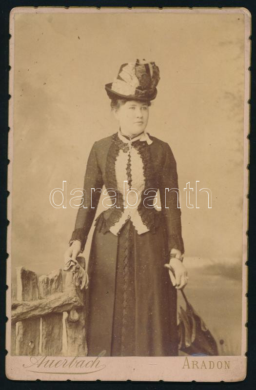 cca 1890 Női portré, keményhátú fotó Auerbach Miksa Aradi műterméből, ... https://www.darabanth.com/hu/518-Filatelia-kepeslap-numizmatika-mutargy-konyv-papirregiseg-ekszer-aukcio/524.0/Fotomuveszet/Foto~70/cca-1890-Noi-portre-kemenyhatu-foto-Auerbach-Miksa-Aradi-mutermebol-16-5x10-5-cm~II3518751