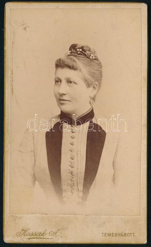 cca 1890 Női portré, keményhátú fotó Kossak József temesvári műtermébő... https://www.darabanth.com/hu/518-Filatelia-kepeslap-numizmatika-mutargy-konyv-papirregiseg-ekszer-aukcio/524.0/Fotomuveszet/Foto~70/cca-1890-Noi-portre-kemenyhatu-foto-Kossak-Jozsef-temesvari-mutermebol-10-5x6-5-cm~II3516314