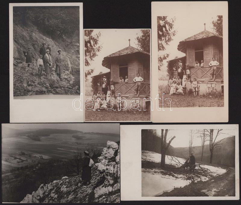 Leírás: cca 1920 Kirándulók, hegyek, 5 db fotó, 9×13 cm