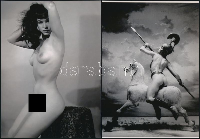 Leírás: cca 1920 és cca 1960 "Amazonok a műteremben", szolidan erotikus felvételek, 2 db modern nagyítás jelzés nélkül, 21x15 cm