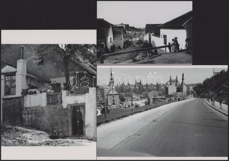 Leírás: cca 1960 előtti felvételek a Tabánról és annak helyéről, 3 db modern nagyítás jelzés nélkül, 21x15 cm és 10x15cm