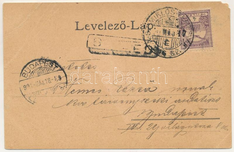 Leírás: 1901 Billéd, Biled; Ziegelei, Geschäftshaus Ignatz Tenner / Téglagyár, Tenner Ignác üzlete. Szecessziós-virágos keret / brickyard, brick factory, shop of Tenner. Art Nouveau, floral frame (b)