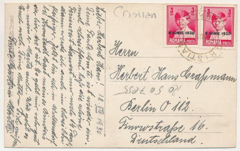 1930 Keresztényfalva, Neustadt bei Kronstadt, Cristian; látkép / gener... https://www.darabanth.com/hu/518-Filatelia-kepeslap-numizmatika-mutargy-konyv-papirregiseg-ekszer-aukcio/524.0/Kepeslapok/Erdely~743/1930-Keresztenyfalva-Neustadt-bei-Kronstadt-Cristian-latkep-general-view-Atelier-Helios-M~II3520961