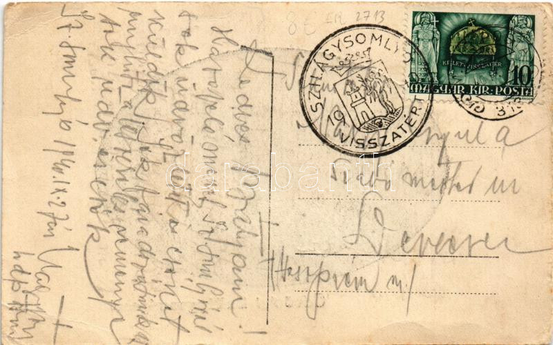 Leírás: 1940 Szilágysomlyó, Simleu Silvaniei; látkép / general view + "M. KIR. POSTA 313" + "1940 Szilágysomlyó visszatért" So. Stpl. (gyűrődések / creases)
