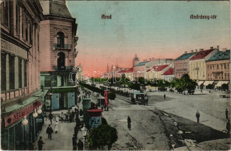 Arad, Andrássy tér, lóvasút, Neumann M., Deutsch Testvérek üzlete, hir... https://www.darabanth.com/hu/518-Filatelia-kepeslap-numizmatika-mutargy-konyv-papirregiseg-ekszer-aukcio/524.0/Kepeslapok/Erdely~743/Arad-Andrassy-ter-lovasut-Neumann-M-Deutsch-Testverek-uzlete-hirdetooszlopok-Ingusz-J-es~II3520453