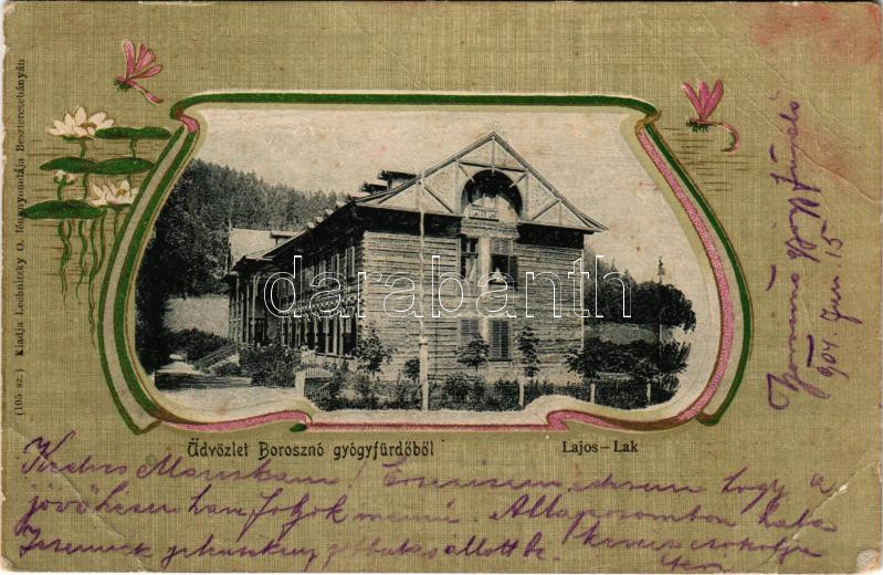 Leírás: 1904 Borosznófürdő, Brusno-kúpele (Borosznó, Brusznó, Brusno); Lajos lak. Szecessziós-virágos keret. Lechnitzky O. fénynyomdája kiadása / spa villa. Art Nouveau floral frame (Rb)