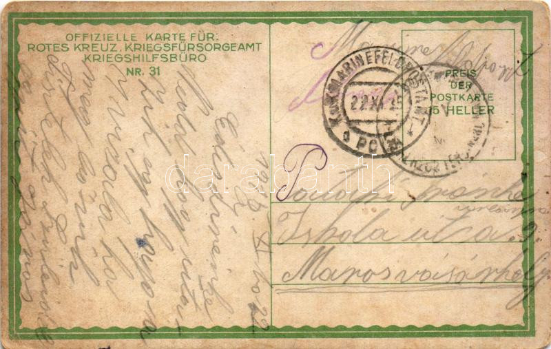 1915 Der Untergang der "ZENTA" am 16. August 1914. Offizielle Karte für Rotes Kreuz, Kriegsfürsorgeamt, Kriegshilfsbüro Nr. 31. / WWI Austro-Hungarian Navy, K.u.K. Kriegsmarine art postcard. The downfall of SMS Zenta protected crusier, sunk in the Battle of Antivari s: A. Sink (kopott sarkak / worn corners)