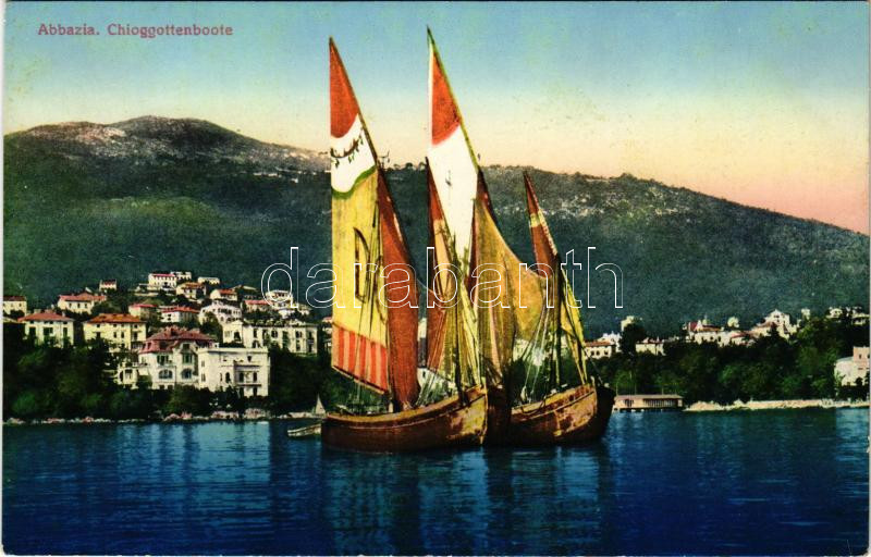 Abbazia, Opatija; Chioggiottenboote / boats https://www.darabanth.com/hu/518-Filatelia-kepeslap-numizmatika-mutargy-konyv-papirregiseg-ekszer-aukcio/524.0/Kepeslapok/Horvatorszag~745/Abbazia-Opatija-Chioggiottenboote-boats~II3517550
