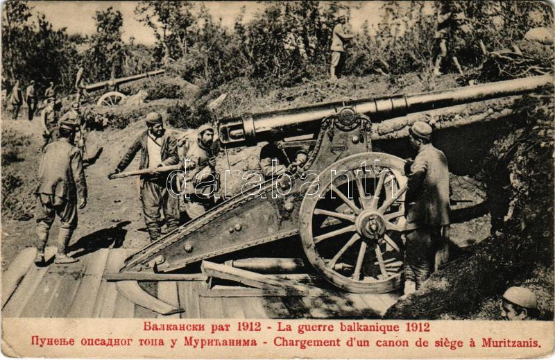 Chargement d'un canon de siege a Muritzanis. La guerre balkanique 1912... https://www.darabanth.com/hu/518-Filatelia-kepeslap-numizmatika-mutargy-konyv-papirregiseg-ekszer-aukcio/524.0/Kepeslapok/Katonai~814/Chargement-dun-canon-de-siege-a-Muritzanis-La-guerre-balkanique-1912-First-Balkan-War-~II3521749