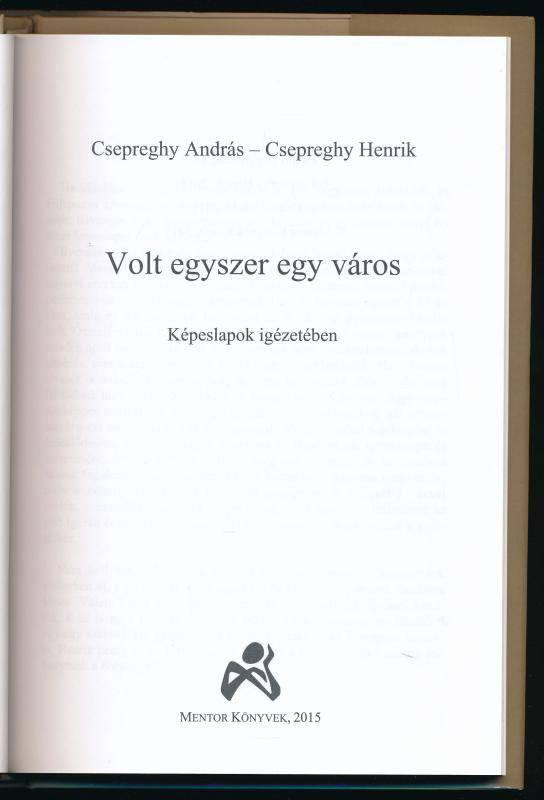 Csepreghy András - Csepreghy Henrik: Volt egyszer egy város. [Marosvásárhely.] Képeslapok igézetében. Marosvásárhely, 2015, Mentor. Gazdag képanyaggal illusztrálva. Kiadói kartonált papírkötés, kiadói papír védőborítóban. (Ritka!)