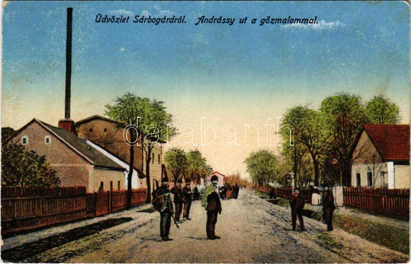 1916 Sárbogárd, Andrássy út a gőzmalommal. K.J. Bp. 1916/20. (EM) https://www.darabanth.com/hu/518-Filatelia-kepeslap-numizmatika-mutargy-konyv-papirregiseg-ekszer-aukcio/524.0/Kepeslapok/Magyarorszag~742/1916-Sarbogard-Andrassy-ut-a-gozmalommal-KJ-Bp-191620-EM~II3511408