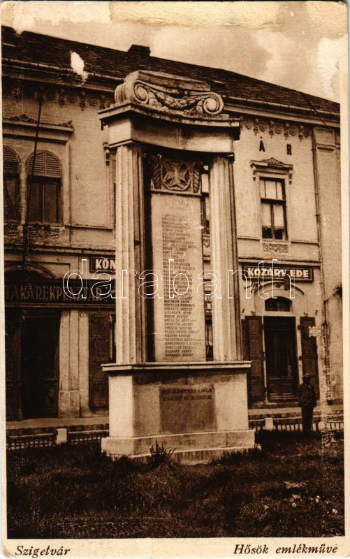 Leírás: 1940 Szigetvár, Hősök szobra, takarékpénztár, Kozáry Ede üzlete (felületi sérülés / surface damage)