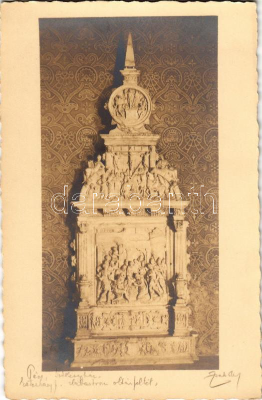 Leírás: Pécs, székesegyház belső, alabástrom oltárfeltét. Zsabokorszky mérnök felvétele. photo