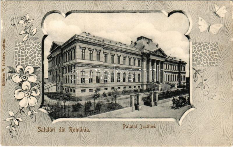 Craiova, Királyi; Palatul Justitiei. W. Bulfinsky / Palace of Justice.... https://www.darabanth.com/hu/518-Filatelia-kepeslap-numizmatika-mutargy-konyv-papirregiseg-ekszer-aukcio/524.0/Kepeslapok/Romania~782/Craiova-Kiralyi-Palatul-Justitiei-W-Bulfinsky-Palace-of-Justice-Art-Nouveau-floral-frame~II3516689