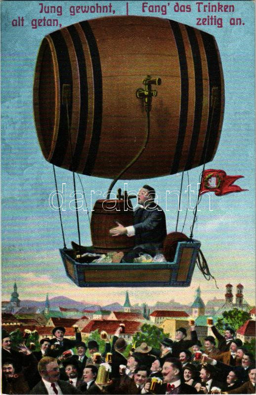 Sörivó férfi hordóléghajón / Jung gewohnt alt getan... / man drinking ... https://www.darabanth.com/hu/518-Filatelia-kepeslap-numizmatika-mutargy-konyv-papirregiseg-ekszer-aukcio/524.0/Kepeslapok/Sor-alkohol-cigaretta~828/Sorivo-ferfi-hordoleghajon-Jung-gewohnt-alt-getan-man-drinking-beer-in-barrel-airship-LP~II3511940