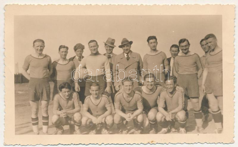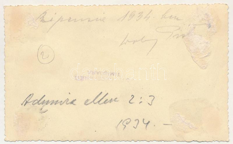 Leírás: 1934 RIPENSIA Temesvár labdarúgó csapat csoportképe, sport, focisták. Foto Kecskeméti / RIPENSIA FC Timisoara football team players' group picture, sport. photo (11.5 x 7 cm) (non PC) (ragasztónyomok / glue marks)