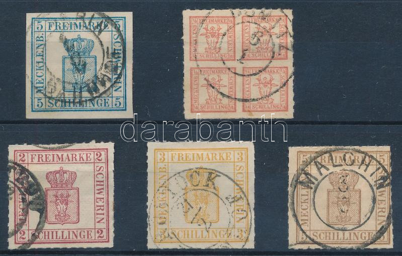 Leírás: Német államok - Mecklenburg-Schwerin 1956/1864 Mi 3, 5, 6-8 garancia nélkül (Mi EUR 1.300.-) / no guarantee