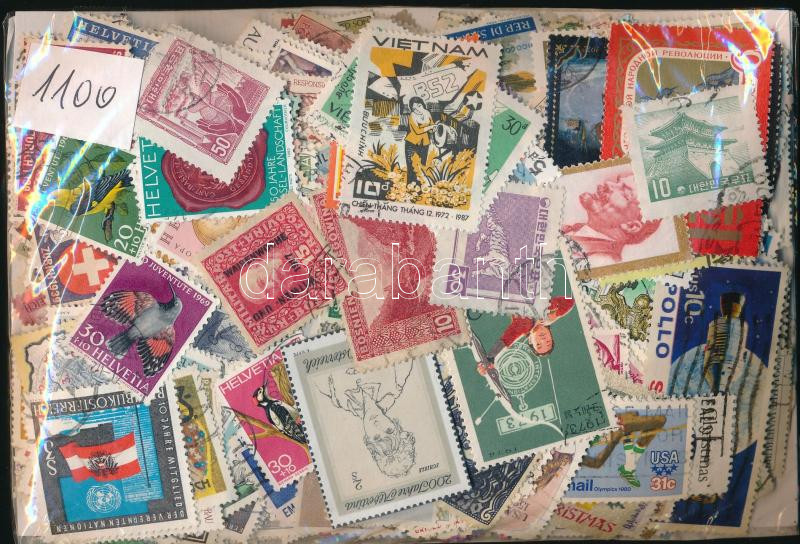 Leírás: 1.100 db vegyes külföldi bélyeg ömlesztve tasakban