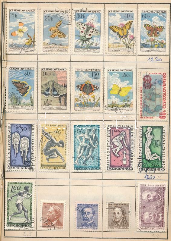 Leírás: Csehszlovákia gyűjteményrész, benne 545 db bélyeg az 1961-1969 közötti időszakból, cserefüzetben (Mi EUR 270.-)