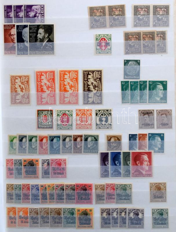 Leírás: Deutsches Reich és területek, megszállások, zónák másodpéldány tétel jobb kiadások, többletek 8 lapos A4-es berakóban