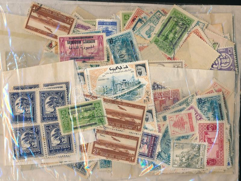 Leírás: Kis tétel főleg Szíria, Libanon bélyegek tasakban ömlesztve