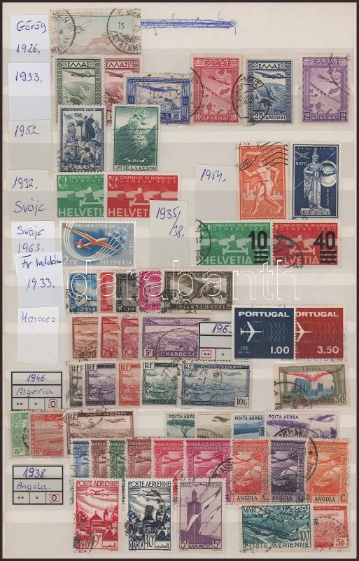 Leírás: Légiposta 139 db régi bélyeg 2 db kétoldalas berakólapon