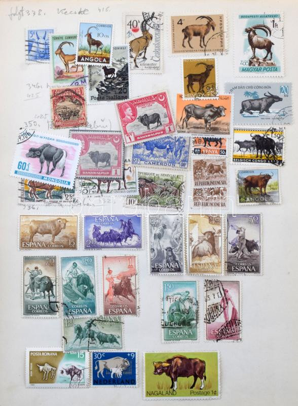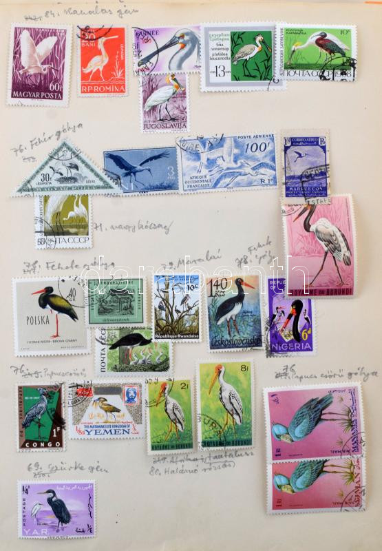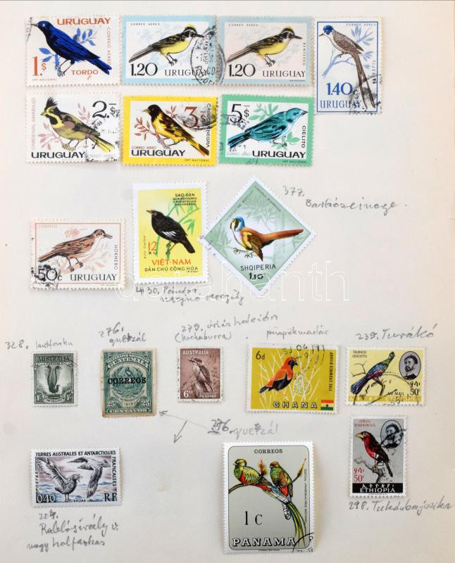 Leírás: Madár - állat motívum gyűjtemény házi készítésű lapokon + kisméretű berakóban, sok száz bélyeg teljes sorokkal, blokkokkal