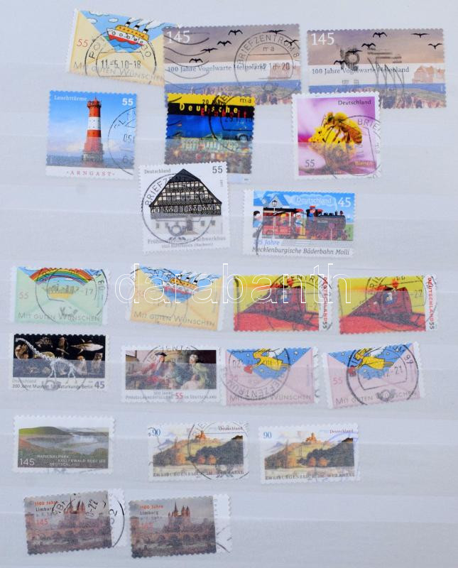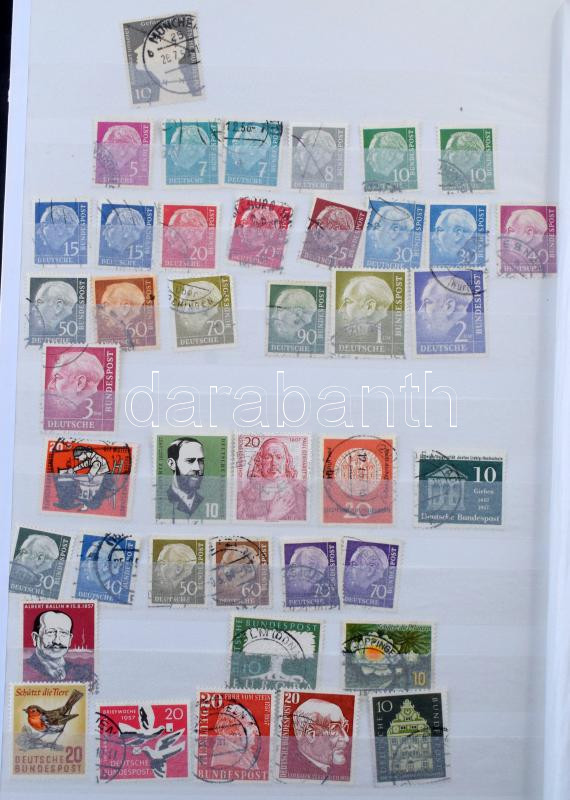 Leírás: Német tétel, benne kb 1.900 db bélyeg 32 fehér lapos A4-es berakóban