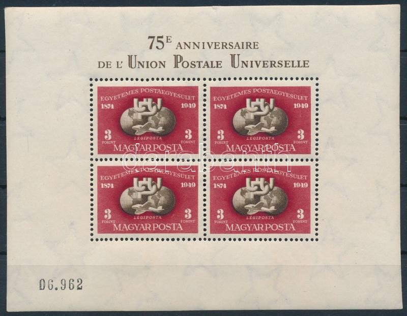 Leírás: 1950 UPU (I.) blokk (felül pici szakadás, amúgy szép állapotban) (220.000)