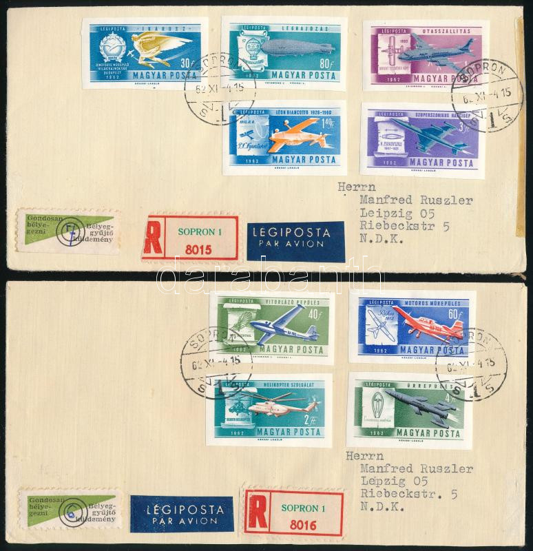 1962 Ikrausztól az űrrakétáig vágott sor 2 db ajánlott légiposta levélen (3.500)