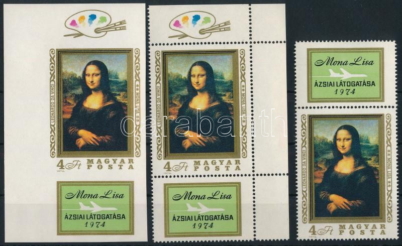 1974 Mona Lisa 2 fogazott + 1 vágott ívsarki szelvényes bélyeg (7.000)
