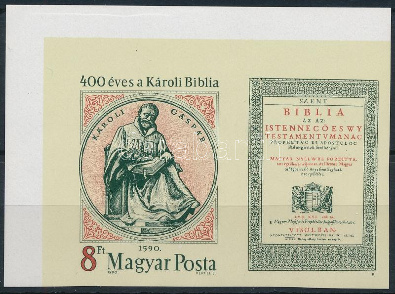 1990 400 éves a Károli Biblia vágott ívsarki szelvényes bélyeg