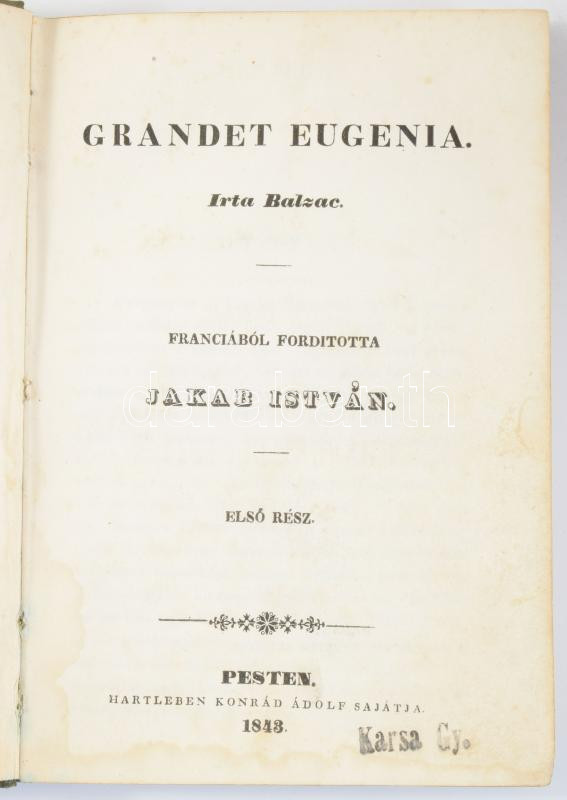 Balzac, Honoré de: Grandet Eugénia 1-2. rész. Külföldi Regénytár I-II.... https://www.darabanth.com/hu/518-Filatelia-kepeslap-numizmatika-mutargy-konyv-papirregiseg-ekszer-aukcio/524.0/Konyvek/Konyvek-Egyeb-ritkasagok~136/Balzac-Honore-de-Grandet-Eugenia-1-2-resz-Kulfoldi-Regenytar-I-II-kotKiadja~II3517511