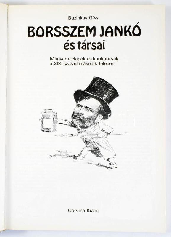 Leírás: Buzinkay Géza: Borsszem Jankó és társai. Magyar élclapok és karikatúrák a XIX. század második felében. Bp., 1983, Corvina, 171+(1) p. Kiadói kartonált papírkötés.