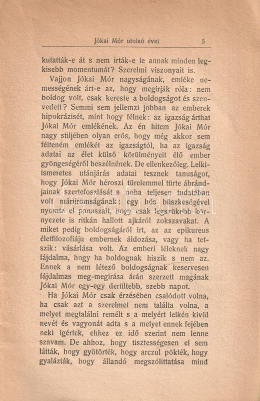Fényes László (1871-1944) oknyomozó újságíró kötete az 1904-ben elhunyt Jókai Mór halála kapcsán megélénkült sajtóérdeklődés nyomán keletkezett. Az újságíró az utolsó évek összefoglalása után az író egykori ismerőseinek nyilatkozataiból szemezget.