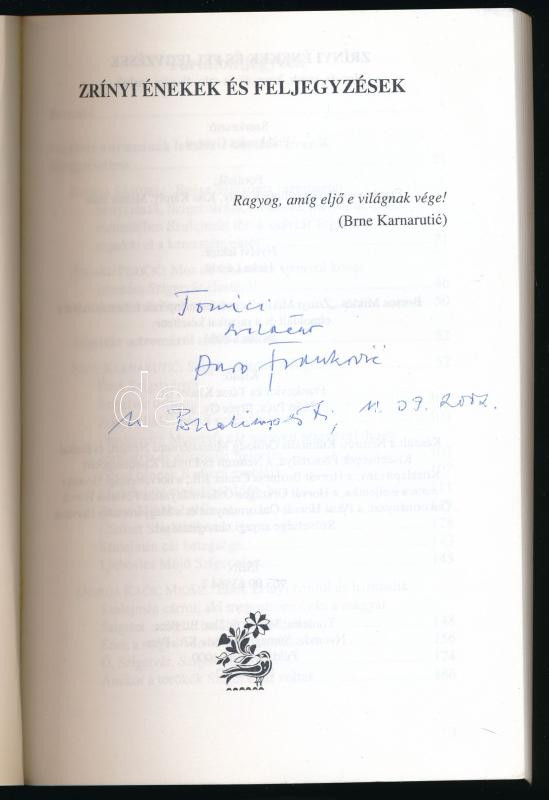 Frankovics György (szerk.): Zrínyi énekek és feljegyzések. Horvát, sze... https://www.darabanth.com/hu/518-Filatelia-kepeslap-numizmatika-mutargy-konyv-papirregiseg-ekszer-aukcio/524.0/Konyvek/Konyvek-Egyeb-ritkasagok~136/Frankovics-Gyorgy-szerk-Zrinyi-enekek-es-feljegyzesek-Horvat-szerb-bosnyak-es-szlovak-nepi~II3516662