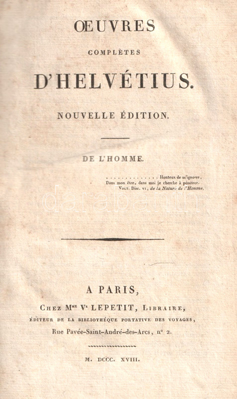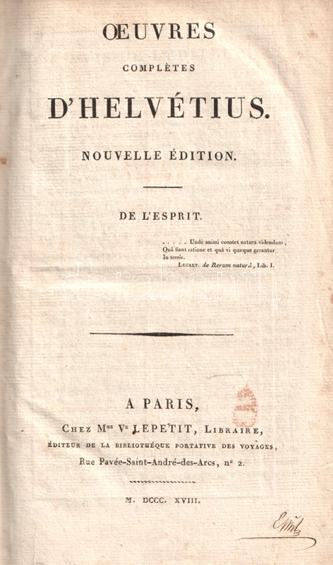 Oeuvres complétes d'Helvétius. Tome I-III: De L'Esprit. De L'Homme. Mélanges. [Teljes mű három kötetben.]