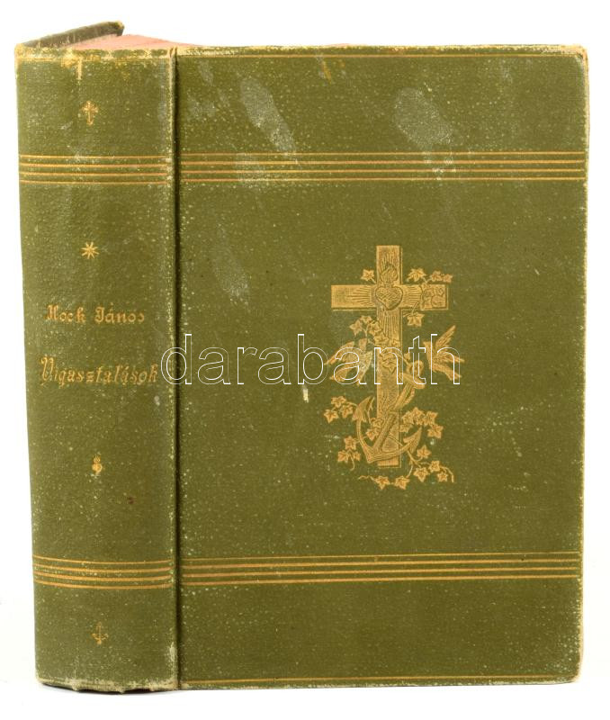 Leírás: Hock János: Vigasztalások könyve. Elmélkedések és hangulatok. Bp., 1896, Athenaeum, [4]+411+[1] p. Első kiadás. Aranyozott egészvászon-kötésben, kissé kopott borítóval, helyenként kissé foltos lapokkal.