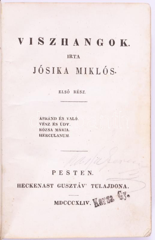Visszhangok. I. rész: Ábránd és való, Vész és üdv., Rózsá Mária, Herculanum. 1. kiadás. Jósika Miklós' Regényei XX. köt.;