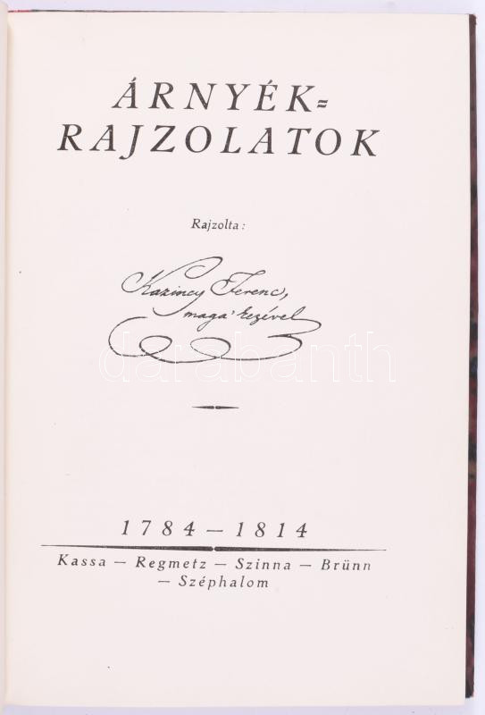 Kazinczy Ferenc: Árnyékrajzolatok. Rajzolta - - maga' kezével 1784-181... https://www.darabanth.com/hu/518-Filatelia-kepeslap-numizmatika-mutargy-konyv-papirregiseg-ekszer-aukcio/524.0/Konyvek/Konyvek-Egyeb-ritkasagok~136/Kazinczy-Ferenc-Arnyekrajzolatok-Rajzolta--maga-kezevel-1784-1814-Osszeall-es-sajto-ala~II3503256