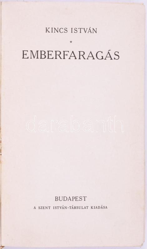 Kincs István: Emberfaragás. Bp., [1940], Szent István-Társulat. Egyetl... https://www.darabanth.com/hu/518-Filatelia-kepeslap-numizmatika-mutargy-konyv-papirregiseg-ekszer-aukcio/524.0/Konyvek/Konyvek-Egyeb-ritkasagok~136/Kincs-Istvan-Emberfaragas-Bp-1940-Szent-Istvan-Tarsulat-Egyetlen-kiadas-Kiadoi~II3496311