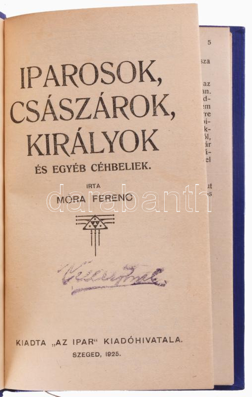 Móra Ferenc: Iparosok, császárok, királyok és egyéb céhbeliek. Szeged,... https://www.darabanth.com/hu/518-Filatelia-kepeslap-numizmatika-mutargy-konyv-papirregiseg-ekszer-aukcio/524.0/Konyvek/Konyvek-Egyeb-ritkasagok~136/Mora-Ferenc-Iparosok-csaszarok-kiralyok-es-egyeb-cehbeliek-Szeged-1925-Az-Ipar-Zacharias~II3503168