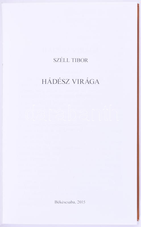 Leírás: Széll Tibor: Hádész virága. ALÁÍRT! Békéscsaba, 2015. Kiadói kartonált kötés, jó állapotban.